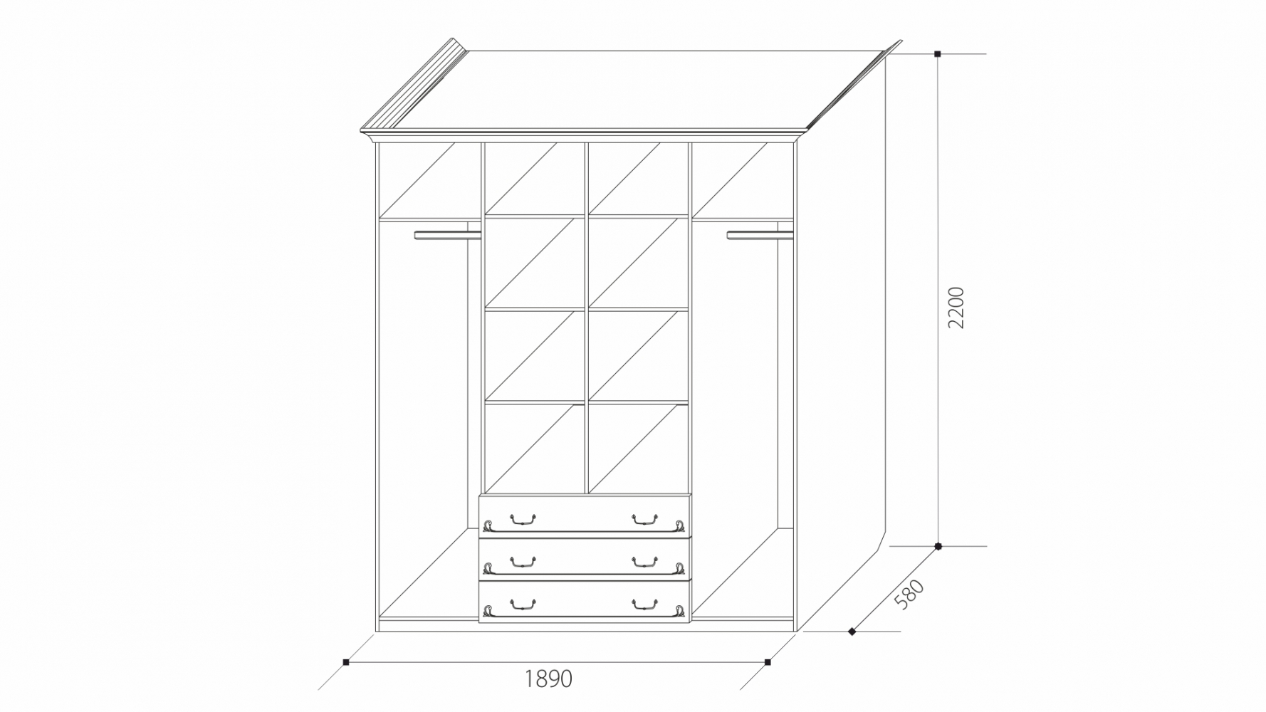 ШКАФ 4-Х дв. с выдвижными ящиками без зеркал